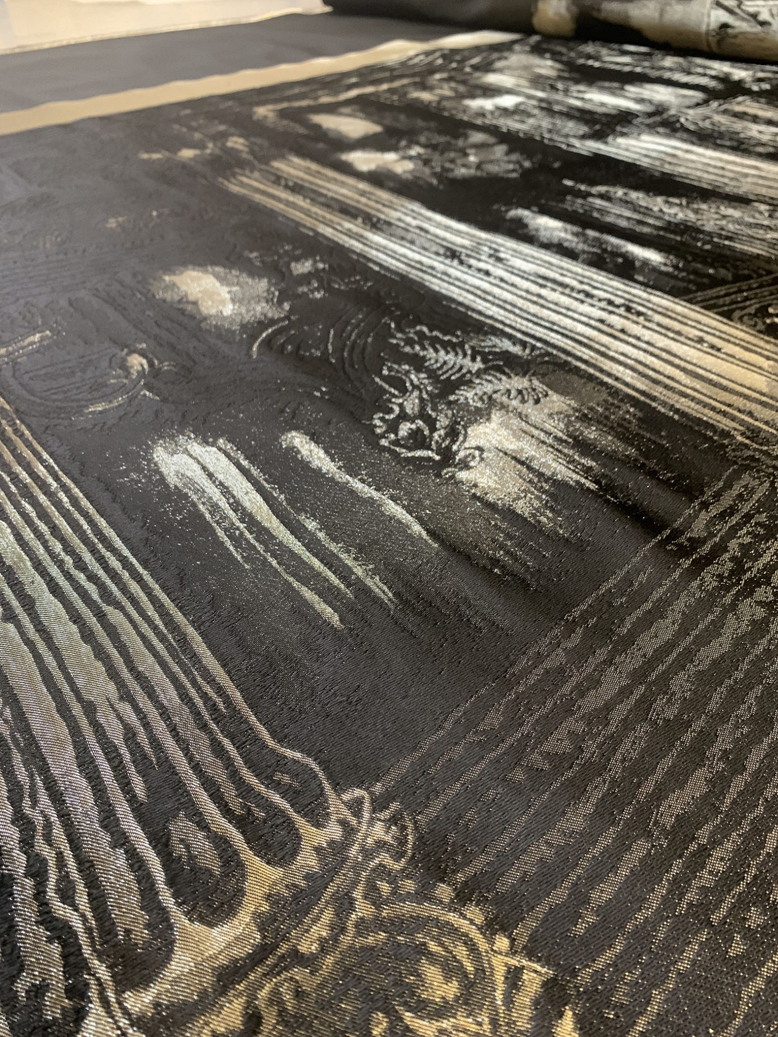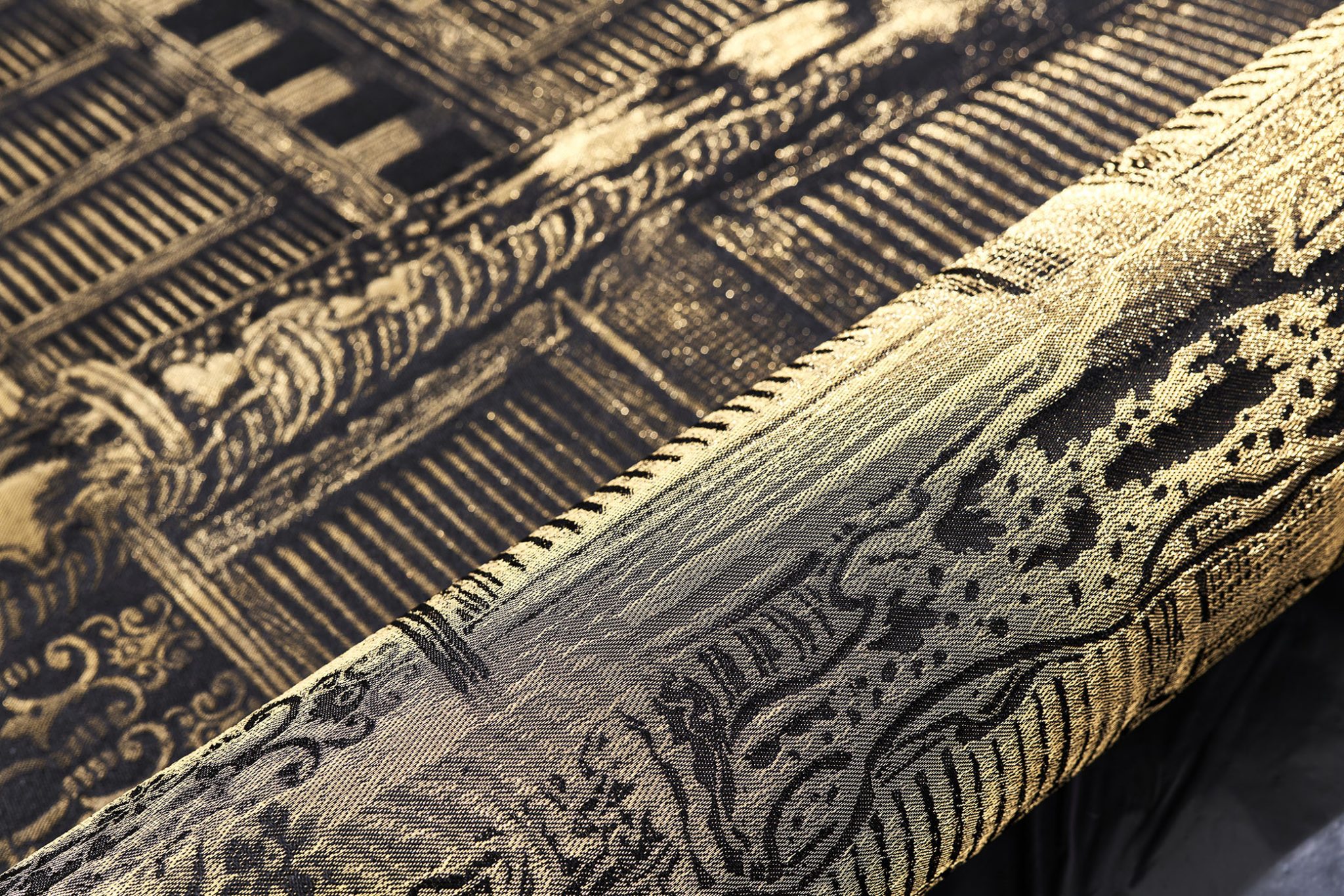 The monumental Basubati Palace Jacquard was woven on what is arguably the most advanced loom in the world. Since the invention of the first Jacquard loom, no pattern of this magnitude had ever been achieved. This marks a true first and a remarkable technical feat, the result of two years of research and development and a custom programming designed by Brochier’s team of engineers.